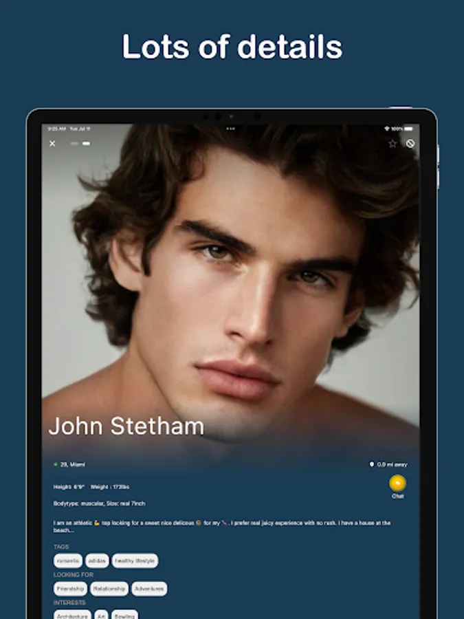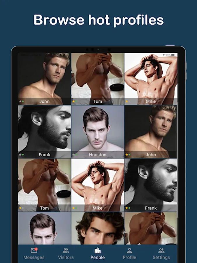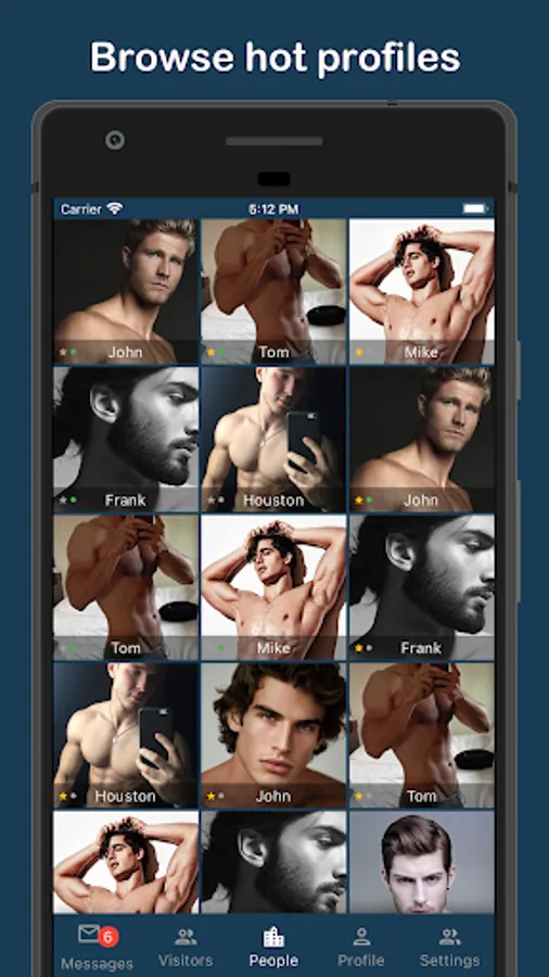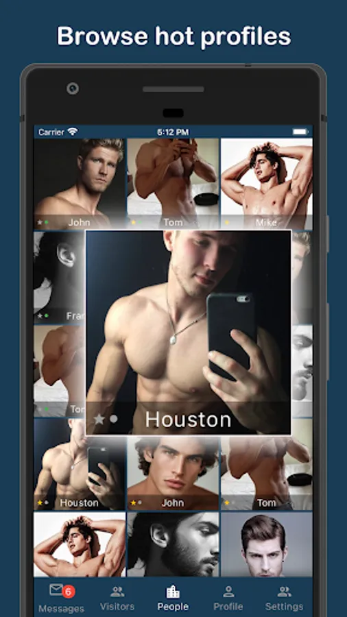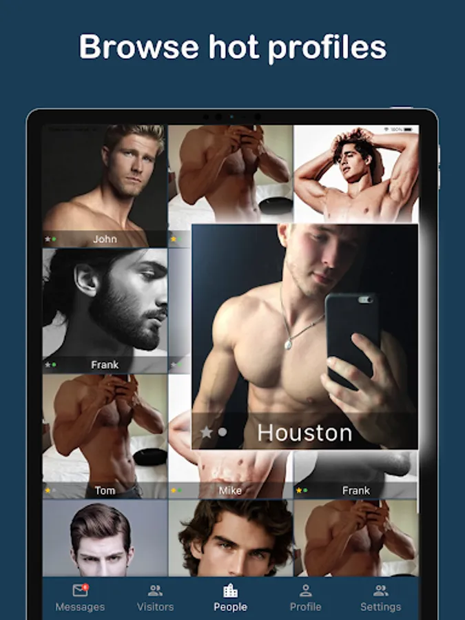 • Browse – check out hot gay men nearby by Swiping Right to “like” a guy and Swiping Left to “pass”.