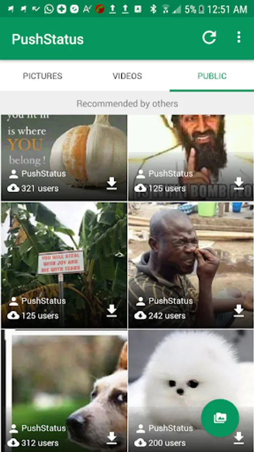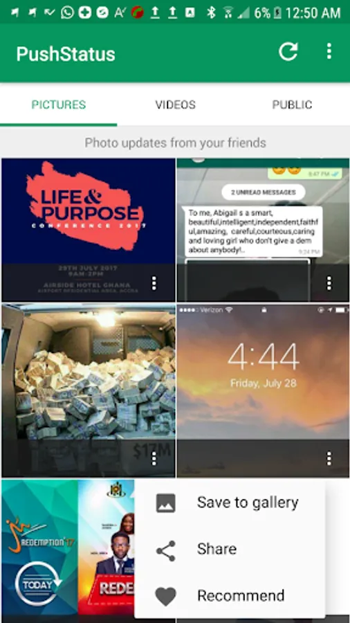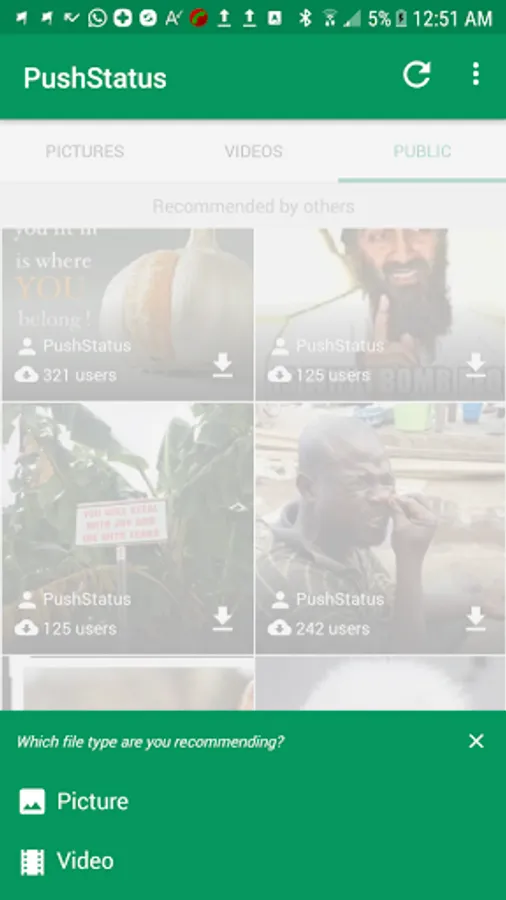 Recommend media files to other PushStatus users and get recommended pictures and videos from others.