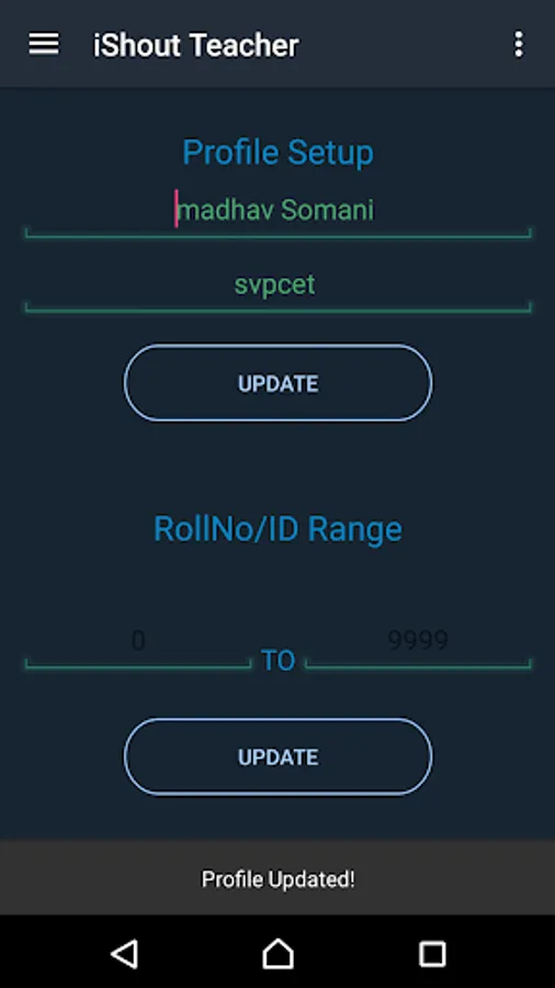 iShout Teachers Receives Shouts From the iShout Student app , the Shouts can be Roll no , ID , etc
