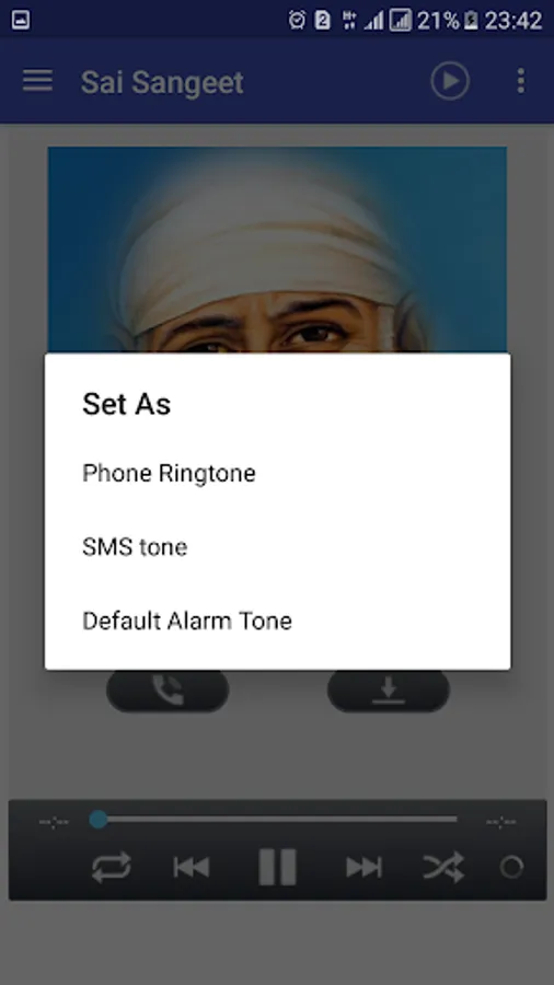 - Aarti Bhajans can be set as phone, sms or alarm ringtone