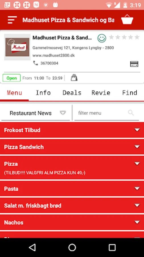Bestil din mad online fra din favorit restaurant med Madhuset Pizza & Sandwich og Bagels gratis app.