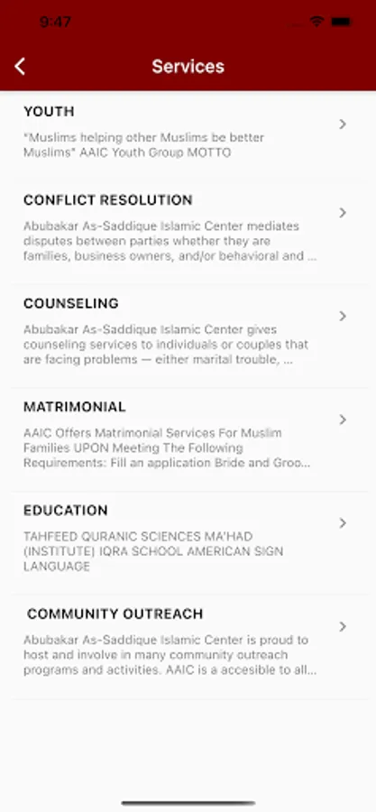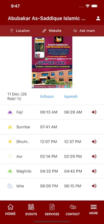 Abubakar As-Saddique Islamic Center provides prayer services for the 5 daily prayers and the Friday prayer. Abubakar As-Saddique Islamic Center serves its educational purpose as well, with its full time Weekend Islamic School, along with the Weekday Hifz and Nazra class. Abubakar As-Saddique Islamic Center also holds various halaqas and programs for the community (please refer to Weekly Activities for details). Nikah services and religious advising are available at Abubakar As-Saddique Islamic Center Masjid as well.