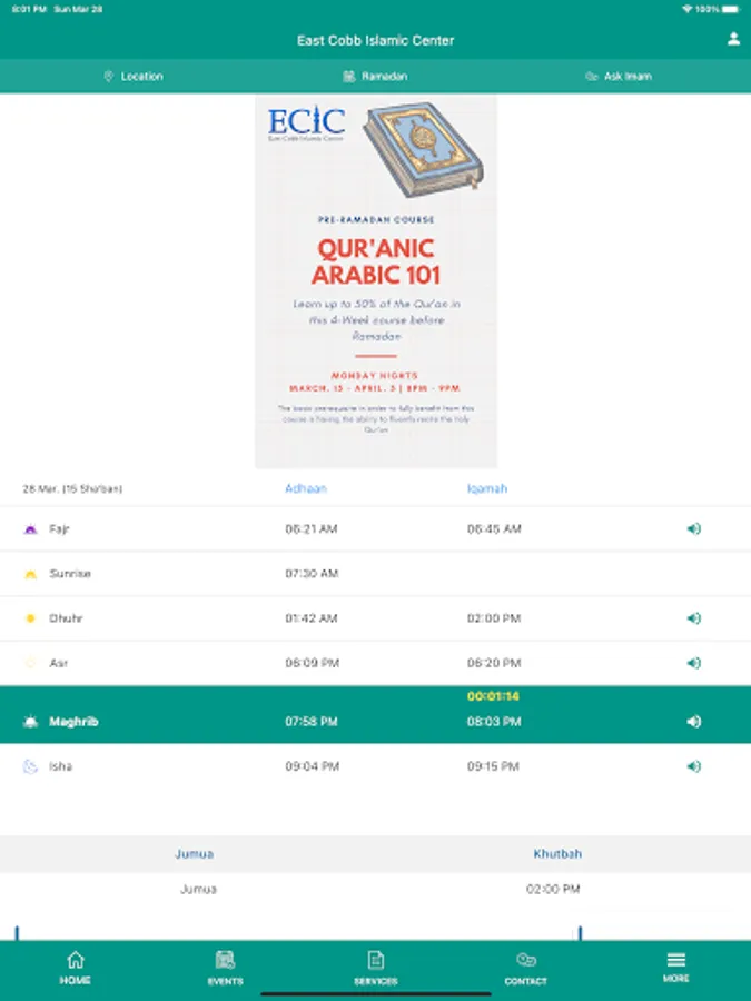 ECIC App is an effort to bring the Community together by providing Daily prayer times, Friday times, Events notifications, and all information about regular activities.