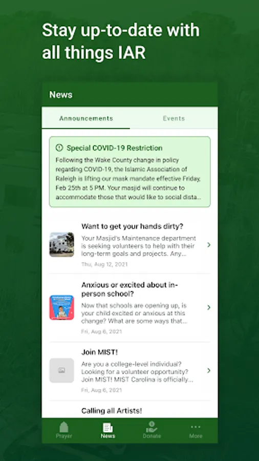 The Islamic Association of Raleigh (IAR) is an Islamic center serving as a masjid, school, and a gathering place for the Muslim community in the Triangle region of North Carolina.