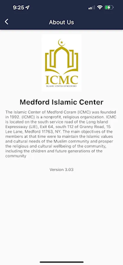 The Islamic Center of Medford Coram (ICMC) is a nonprofit, religious organization.The main objectives of the organization is to maintain the Islamic values and cultural needs of the Muslim community and prosper the religious and cultural wellbeing of the community, including the children and future generations of the community.