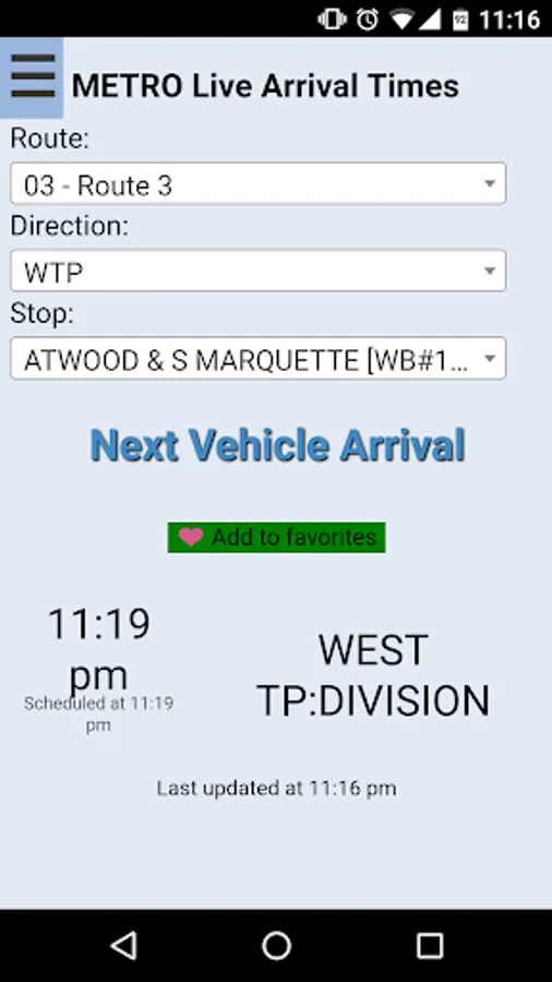 - Save your favorite stops and get the next arrivals with one touch