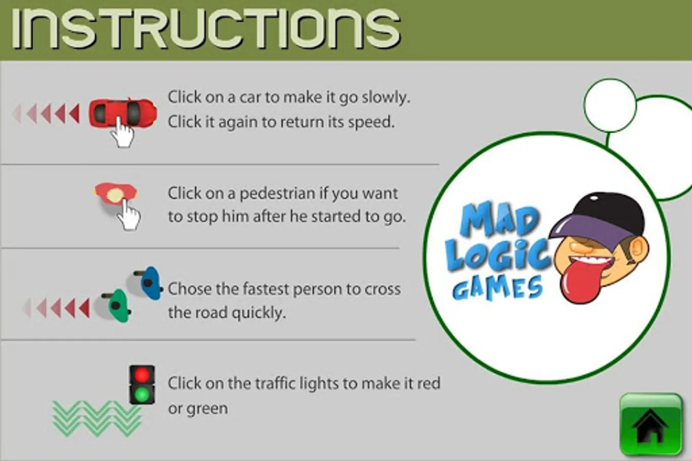 With a bunch of cars moving at varying speeds, you must carefully time your moves to guide the people across the road without any mishaps. Be alert, as even the people have different walking speeds, making the task even more challenging. Avoid the fast-moving cars and ensure no crashes occur. Click the people to make them move, and click again to stop. The same goes for the cars – click to slow them down, and click again to resume their speed. Strategically utilize the Traffic Lights to halt cars for 10 seconds, but be cautious not to exceed the limit, as going over 10 seconds means game over.
