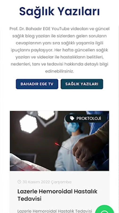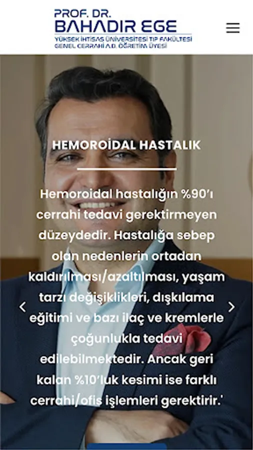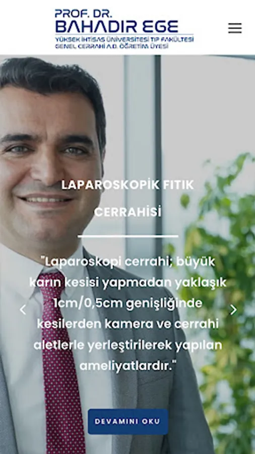 Bahadır Ege studied Medicine at O. Gazi University in Eskişehir between 1995-2001. He completed his General Surgery specialization training in Ankara Gazi University Hospital, Department of General Surgery between 2001-2007. He has many domestic and foreign scientific studies in his field, and he has articles on general surgery in medical books. He has received training on the use of advanced technology, especially in the field of general surgery, and performs operations with robotic surgery.