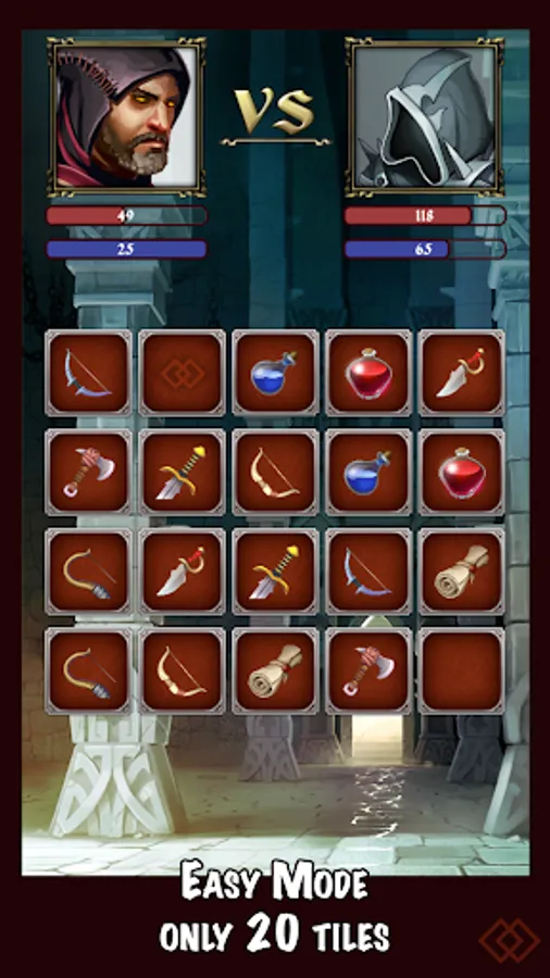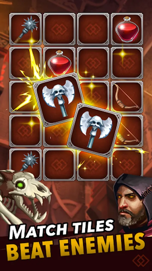 Match pairs, connect tiles, concentrate and crush monsters. Tons of weapons, magic spells and potions to connect and combined for creating devastating combos. Heal your hero before the monsters, store mana, use bows, sword, axes and many more weapons to fight your way to the top of the memory tower.