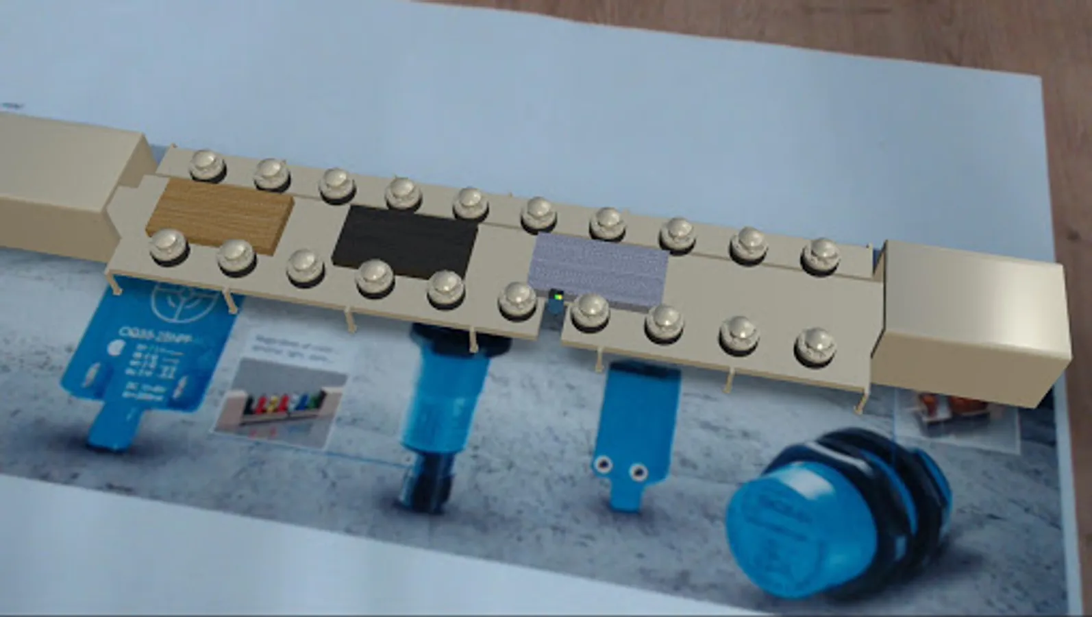The augmented reality shows the different applications for capacitive proximity sensors. You can move around and get closer to the virtual content. Make sure to hold the AR symbol on-screen at all times.