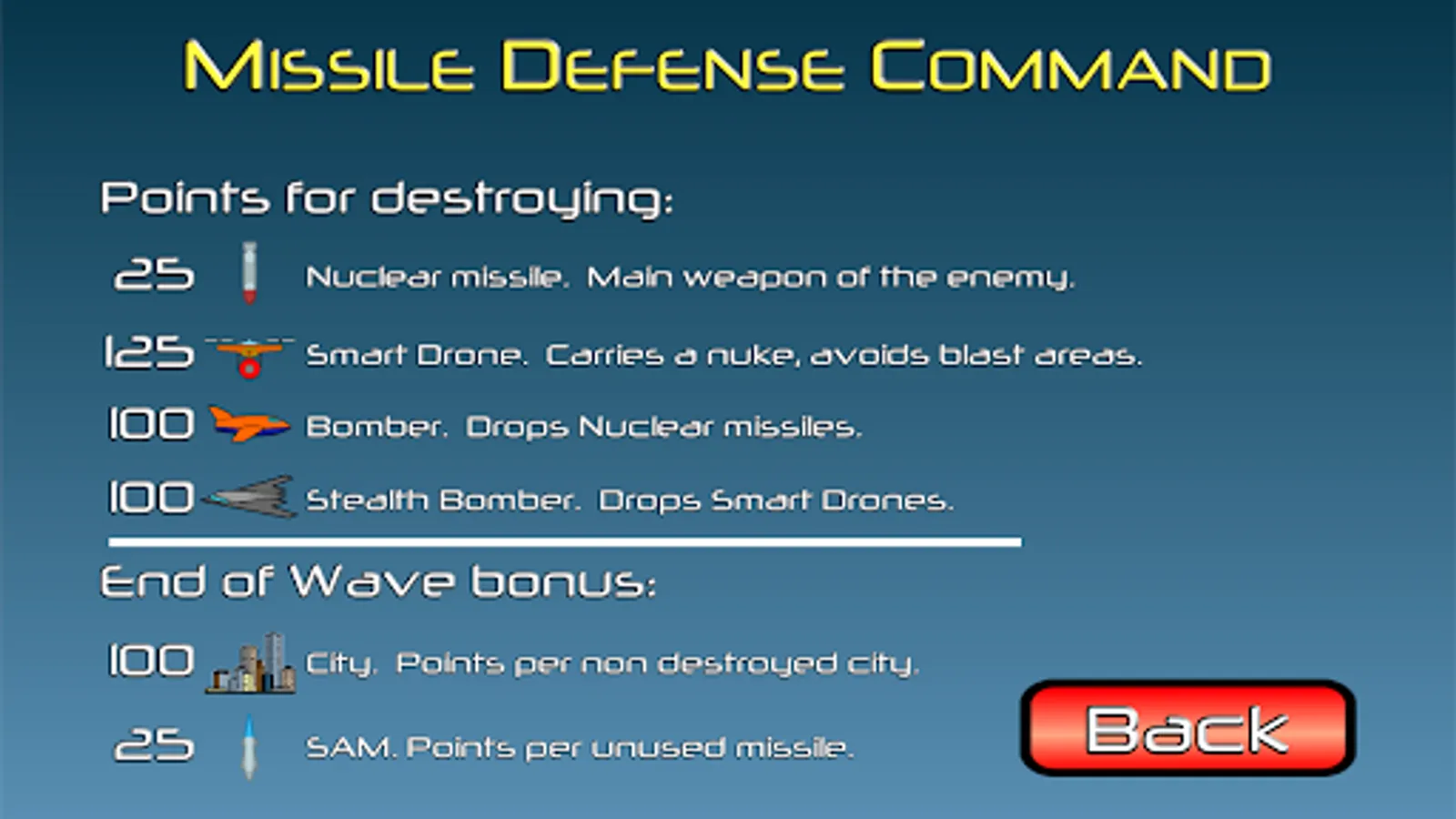 Inspired by classic arcade gaming. Save your cities from incoming missiles by blowing them out of the sky! Easy touchscreen controls for exciting action.