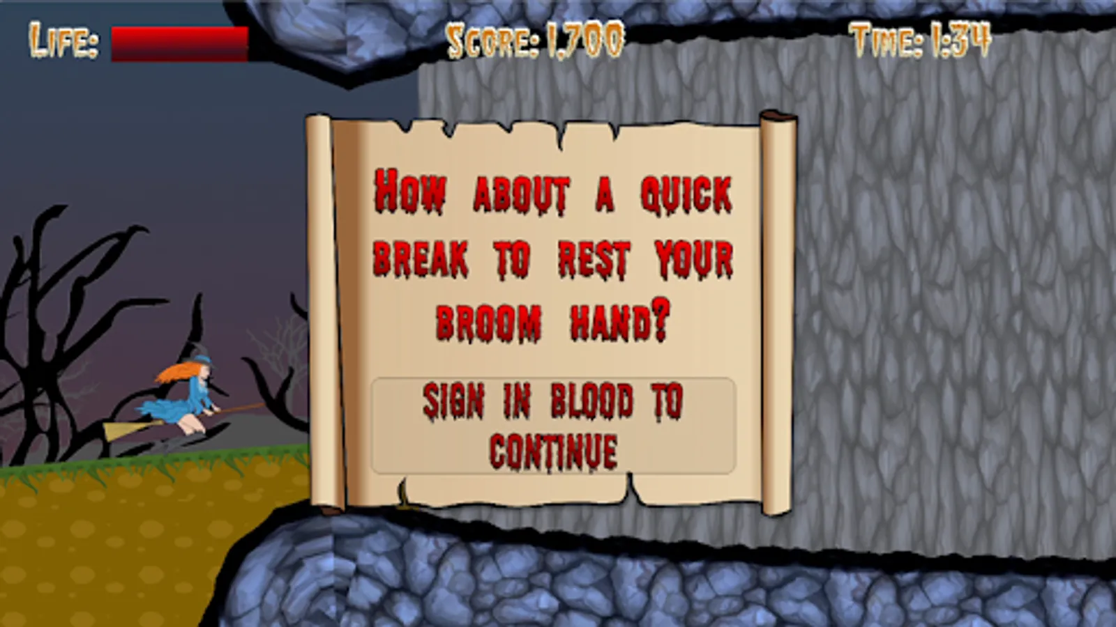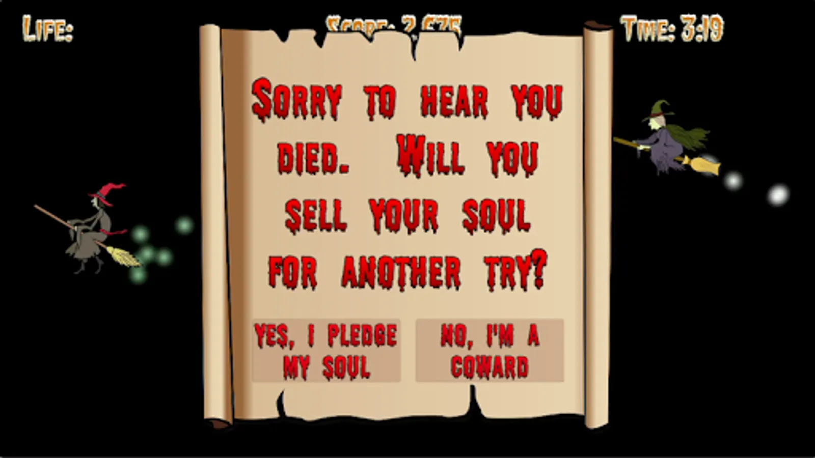 Witches Joust is a 2d side scroller where you play a good witch knocking evil witches out of the sky. Use your broomstick as a lance in this aerial jousting game.
