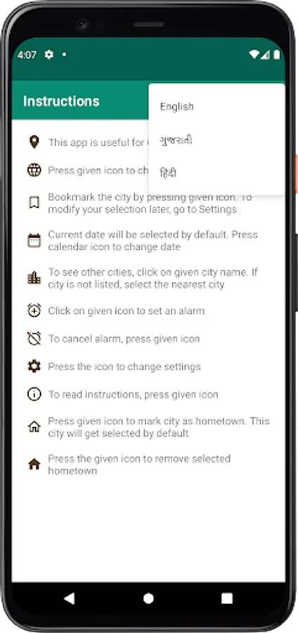 This app indicates Namaz timing for various cities of Gujarat state. User can navigate using preferred language.