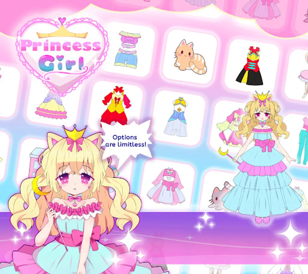 Add the accessories of your preference,using trendy fashion from cute necklaces to long skirts to creating unique princess designs. All items are unlocked!.