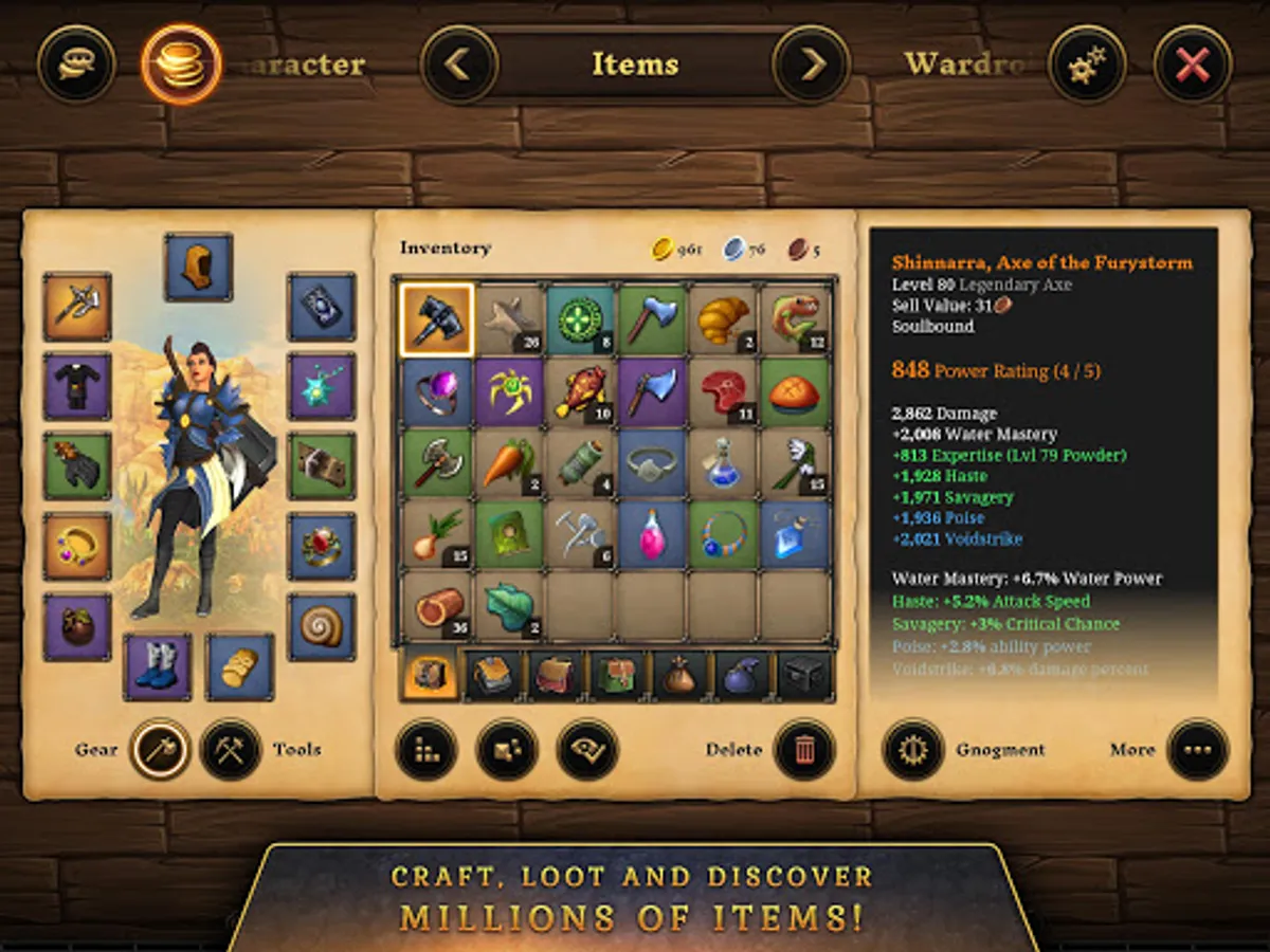 Team up with thousands of players from around the world and create a one-of-a-kind community. Together, construct superior facilities to create magical weapons and enchanted gear. Grow crops and tend to pets in your garden to concoct potions of power. Forge custom gear to outfit your character or trade with friends to help them out.