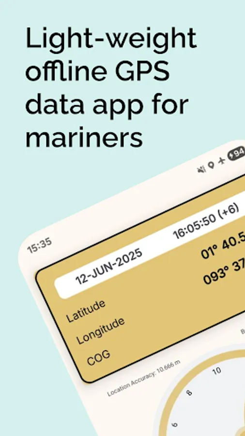 Mariner GPS is a lightweight, offline-first tool designed for seafarers providing: