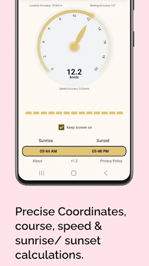 See your Course Over Ground (COG) and smoothed bearing in degrees, filtered to eliminate jitter.