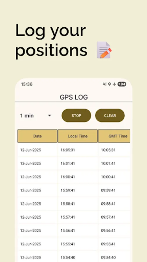 • Auto-logging of GPS position and timestamps (local + GMT)