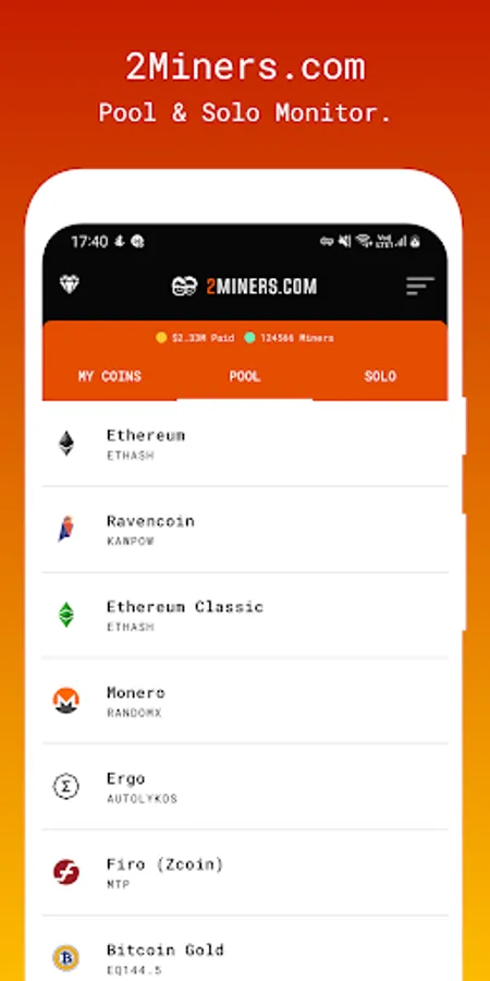 Keep track of 2Miners.com mining operation including hashrates, balances and payments. This is an unofficial app for 2miners.com, which uses 2miners pool awesome API to provide you all the data.