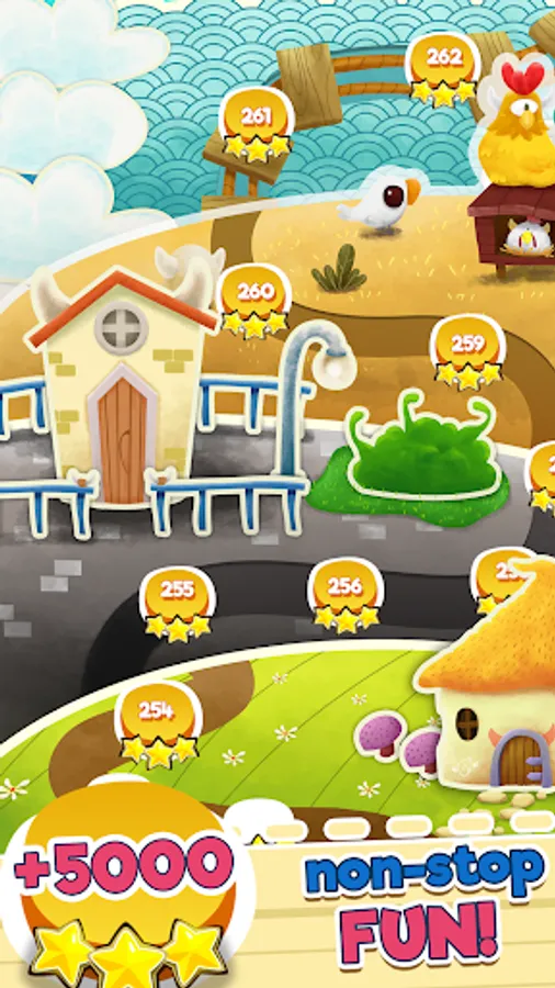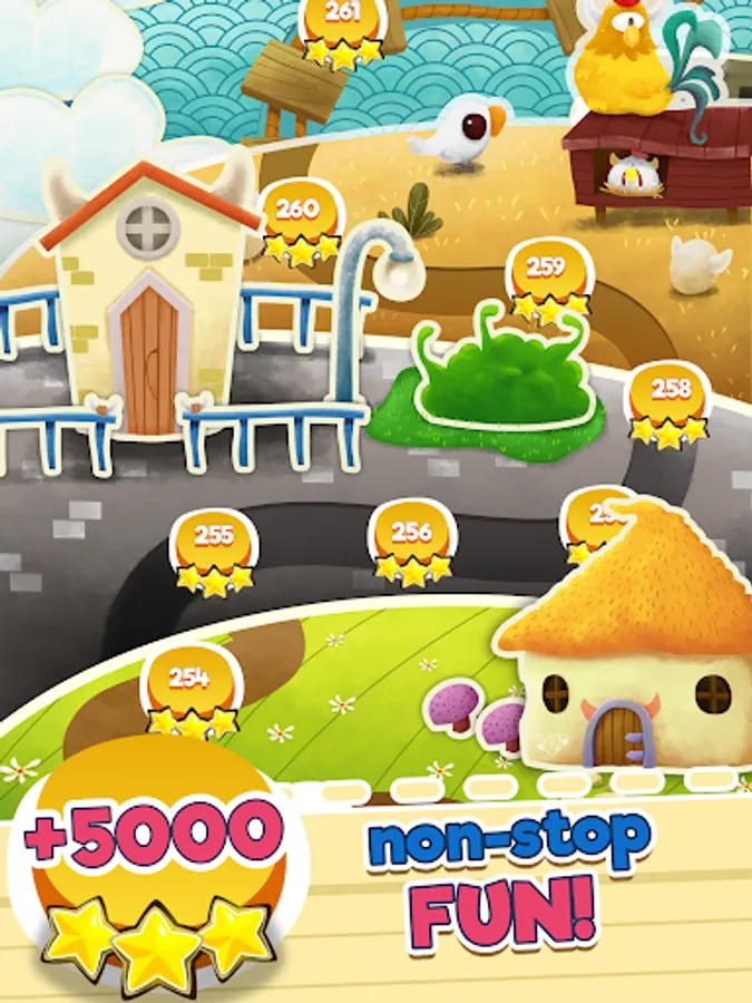 Connect to Facebook in this game and discover thrilling destinations with your friends like the Farm, Floating Cloud House, Water House, Land Rock Hills and many more. With more than 5000 (and more added every month) levels makes it addictive and interesting to play.
