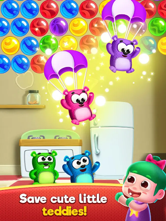 ★ Shoot all the pop bubbles and free cute little Teddies 🧸 from BugeyMan's trap
