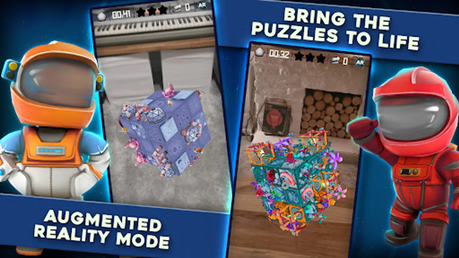 Excite your friends and family by bringing the planets and puzzles into the real world with AR mode! Connect with facebook to track your friends progress throughout the QB universe and see how you stack up!