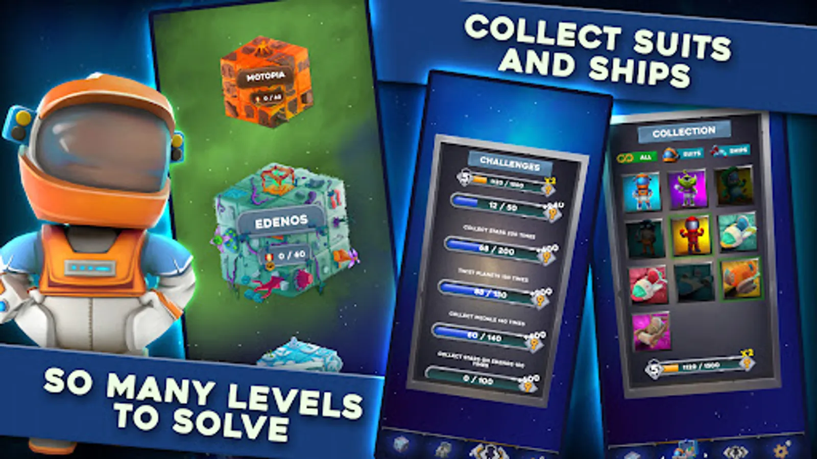 Do you love solving puzzles...in space? QB Planets is a family-friendly cubic puzzle space adventure that will challenge your puzzle-solving skills. Play as your astronaut and explore strange and beautiful puzzle planets with mysterious powers and dangerous environments. Locate and collect stars to power your ship and blast off to new and exciting planets. Avoid obstacles and find a safe route to your ship with the least possible moves whilst collecting 3 stars! Twist your way through diverse, challenging puzzles while helping your Astronaut navigate new worlds. Unlock fun and unique space suits and rocket ships by completing special missions. Challenge your friends to become each level's Twist Champion!