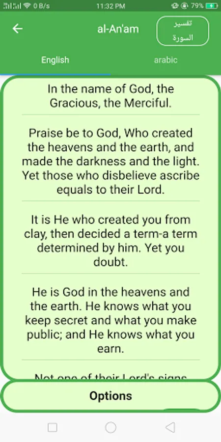 The app has a couple of prayers and the full Quran book written in English and Arabic, as well as an explanation for every "Surah" in the book.