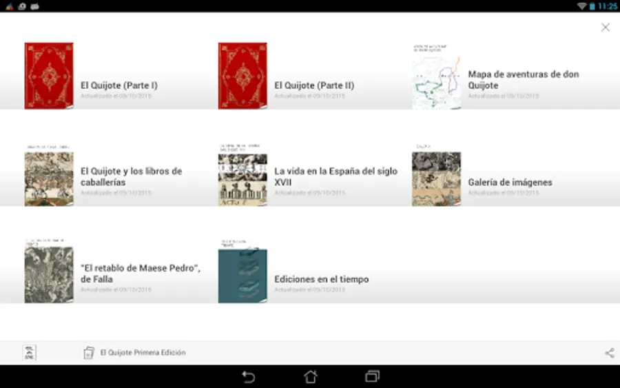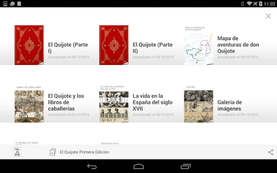 The first edition of Don Quixote, preserved at the National Library of Spain, together with related content (maps, gallery with images and different representations of Don Quixote, contextual information, other editions...), in interactive magazines.