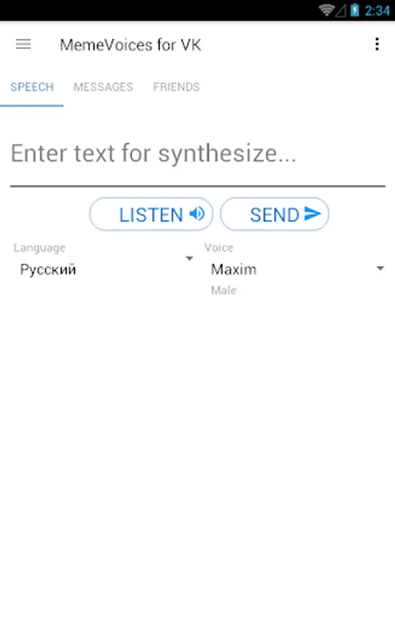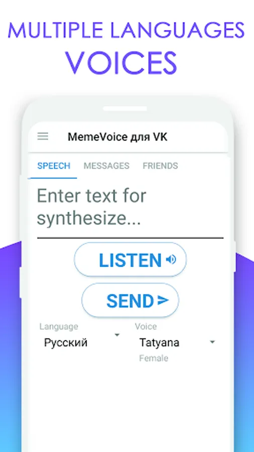 With this application you can voice the written text and send it to friends like an audio message, voiced in funny voices, or send audio-phrases of popular memes with integration to messengers.