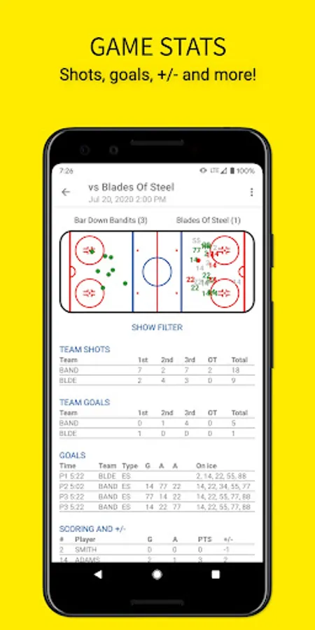 As your hockey family tracks the game at the rink, a live play-by-play feed displays all the action as it happens.