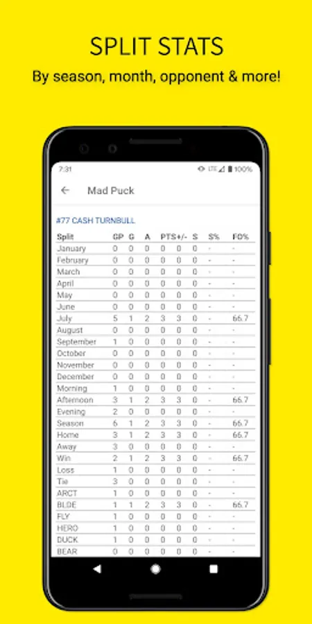All the stats and plays entered during a game are tabulated in real-time, giving your team an instant analytical advantage. And the Mad Puck advantage doesn’t stop when the final horn sounds: you can view individual game stats, cumulative season stats, and splits, all generated from the crowdsourced data collected during each game.