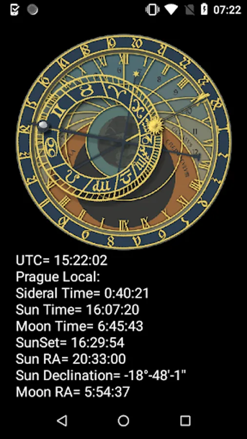 The astronomical clock is adjusted to the local solar time of the Old Town Square in Prague