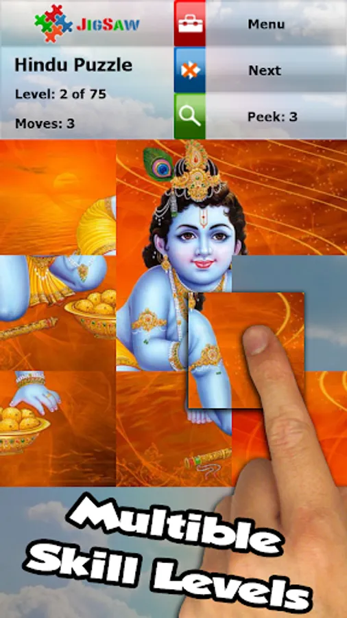 Colorful puzzle game with beautiful images of Hindu gods.
