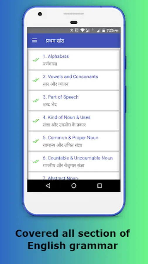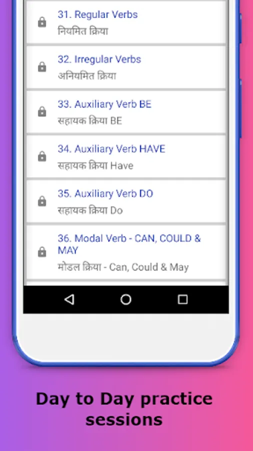 Classes feature grammar, frequently used phrases, when and where to use small letters, capital letters, form sentences and many more... It also includes alarm reminders and progress chart.
