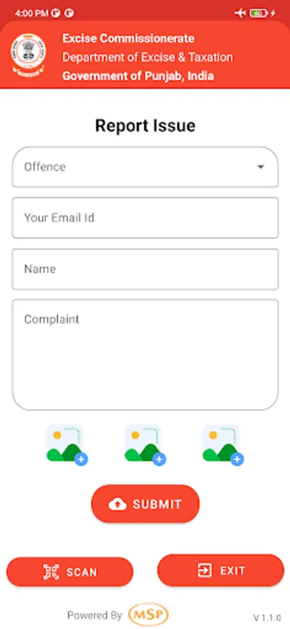 In addition to above feature, ‘Report Issue’ is included for 4 different types of offences as below and the report can be submitted along with supporting photo
