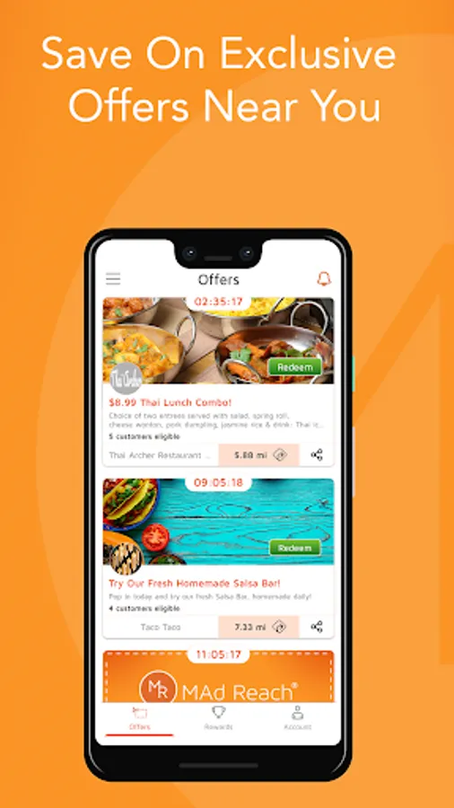 The MAd Reach™ app is a deal finder with all of the best coupons for local restaurants. Receive relevant coupons based on your location and never miss out on a deal.