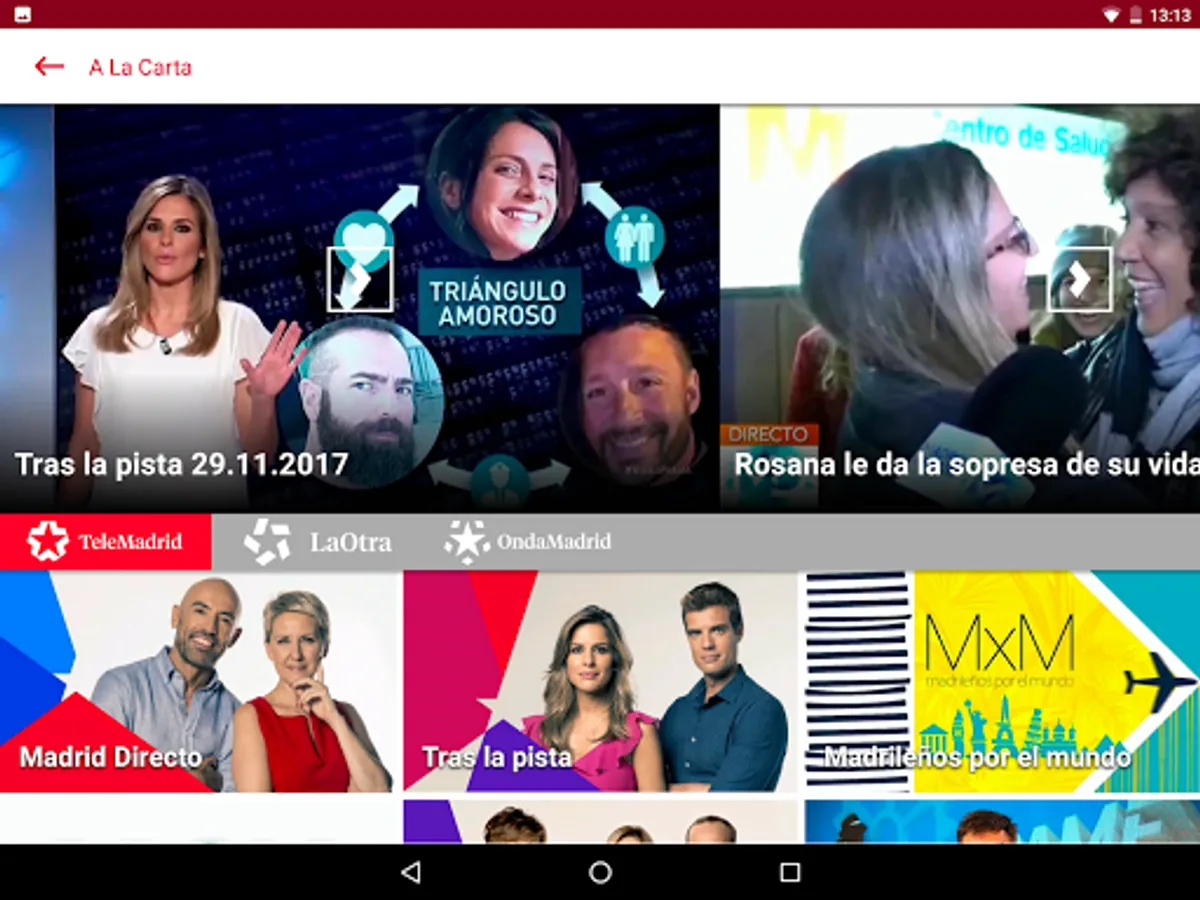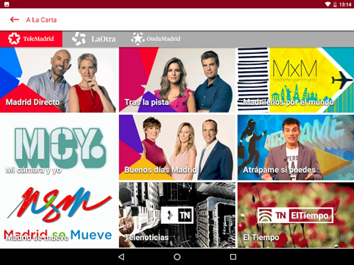 * Programs A la Carte: complete podcast videos and contests, news, documentaries, entertainment, music ... Do not miss the last "Madrileños por el Mundo", reports of "My camera and I" or "Madrid Direct".
