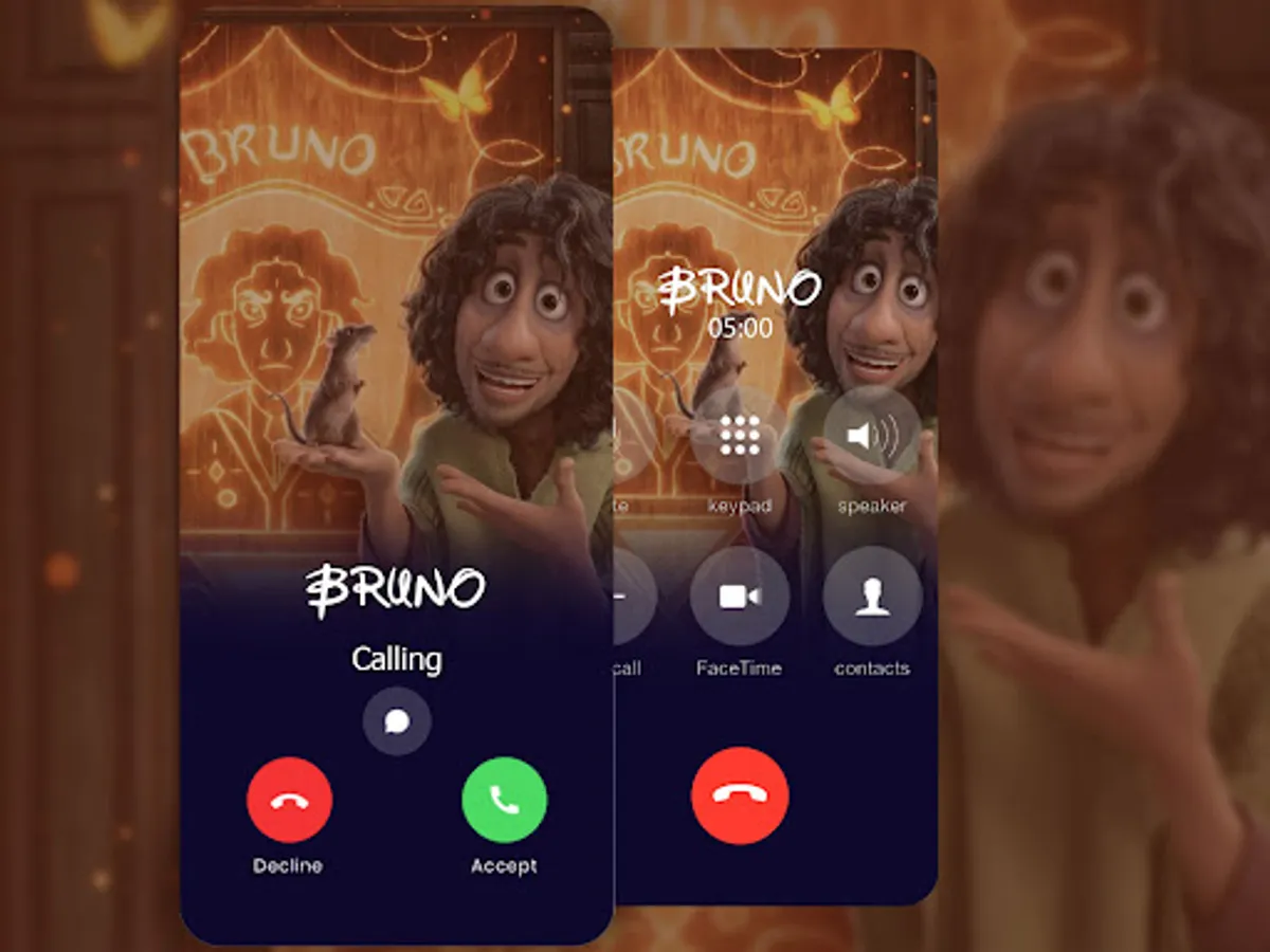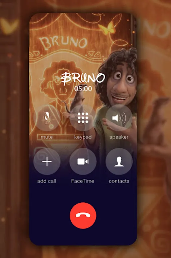 Bruno fake video call. Very funny application with Bruno from famous Movie Encanto. fake video call. Get Video Call and Voice Call from Bruno.