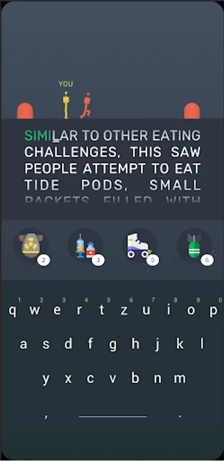 Compete in fast-paced typing races to determine the fastest typer. Use various power-ups and abilities, such as word-bombs, to change the tide of the race and emerge victorious.