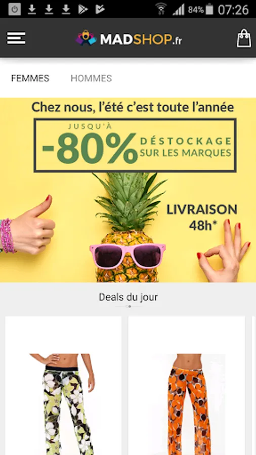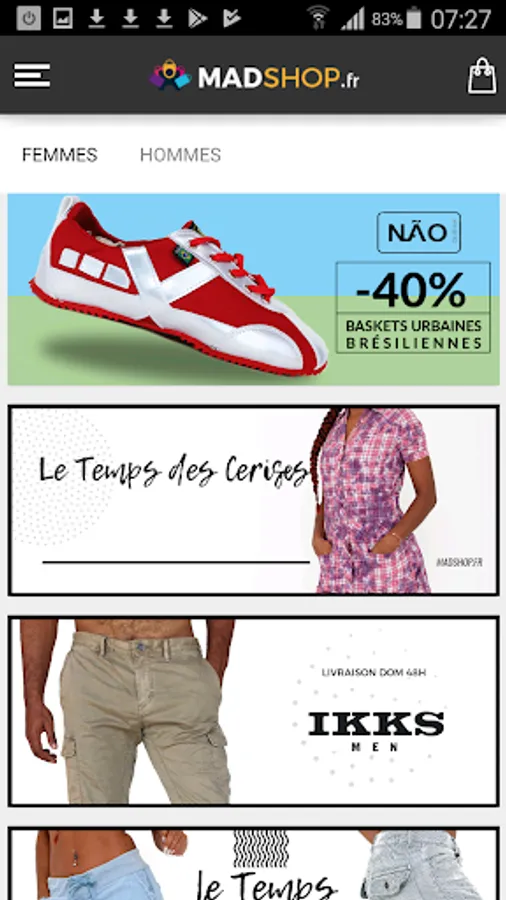 The products sold by Madshop are clothes and accessories to major French and international brands sold at prices "Clearance" with permanent reductions up to 60%.