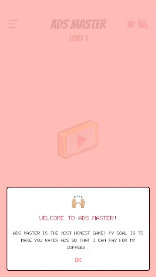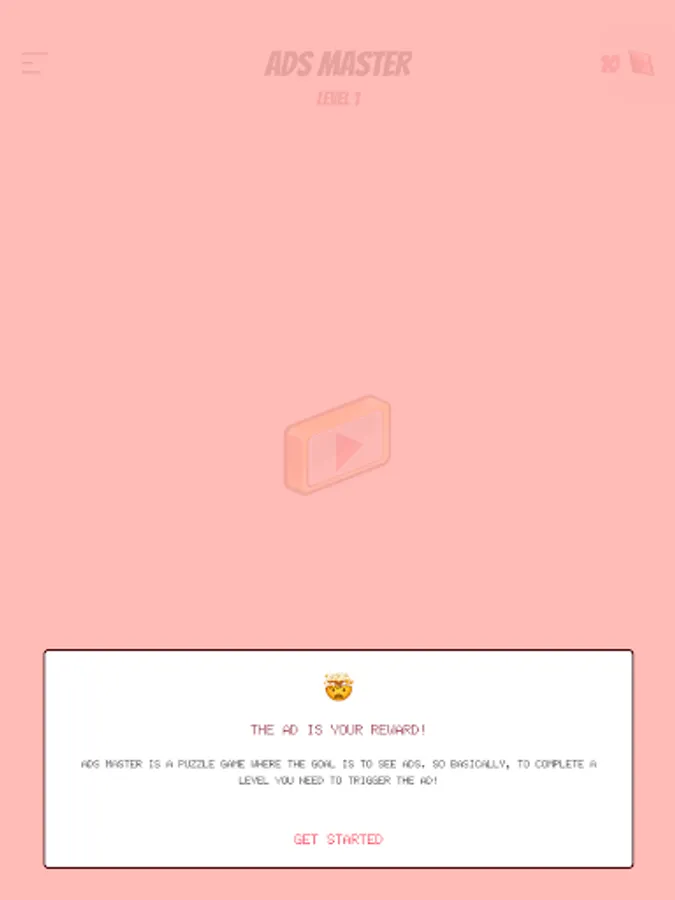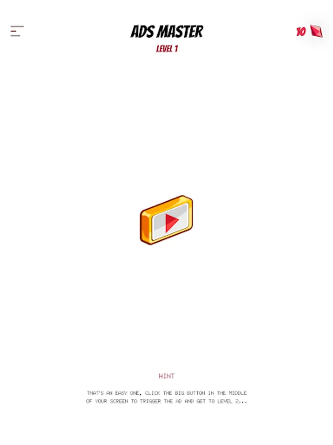 Ads Master might be the most honest game ever, the goal is to find the hidden button but I'm not going to make it easy for you to do so... Levels get harder and harder.