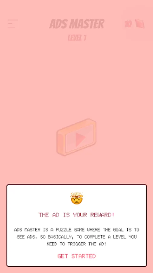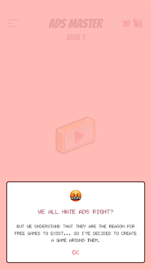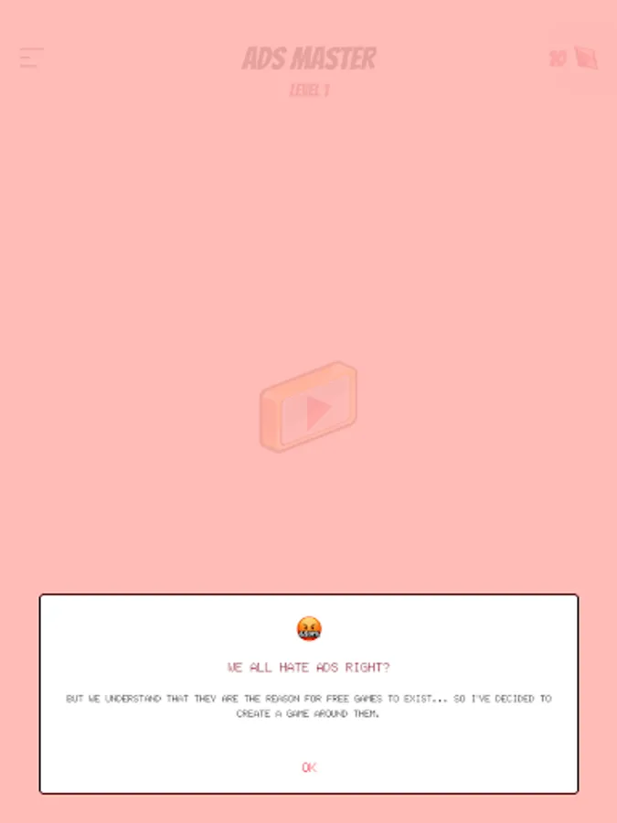 Ads Master's concept is simple, your goal is to find the hidden button to get to the next level... But obviously I'm probably the worst developer, each level becomes more and more complex so you have to find the way to solve the level to find the button you deserve.
