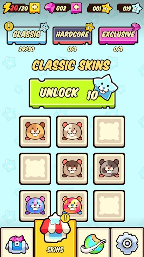 Collect Hamsters from the classic collection, the hardcore one or the exclusive one. Catch them all