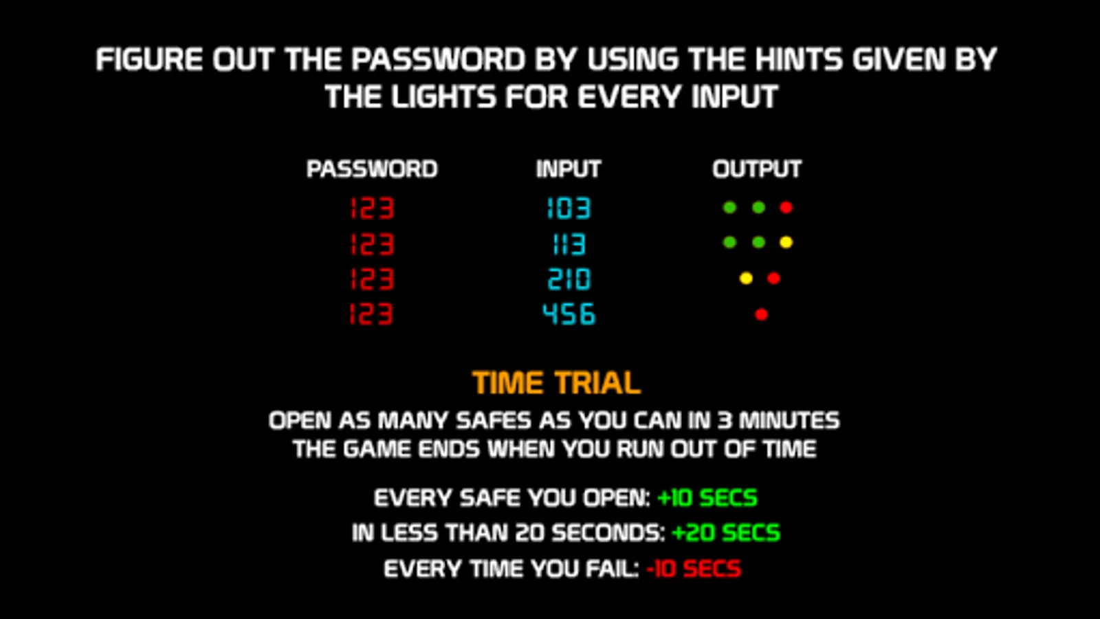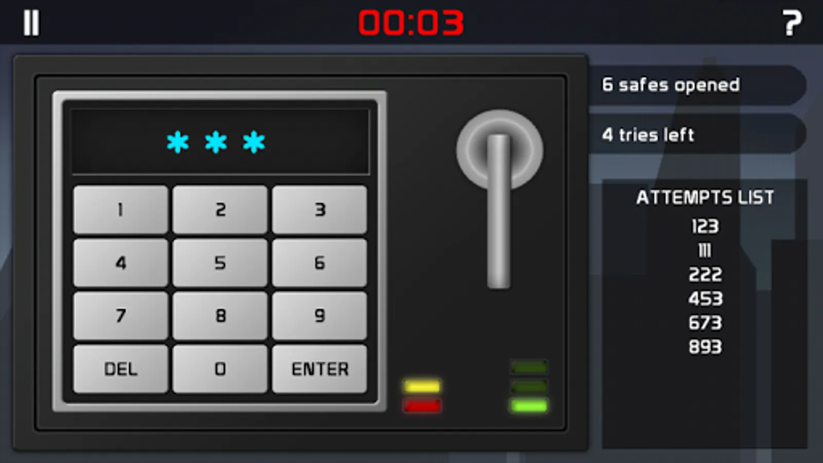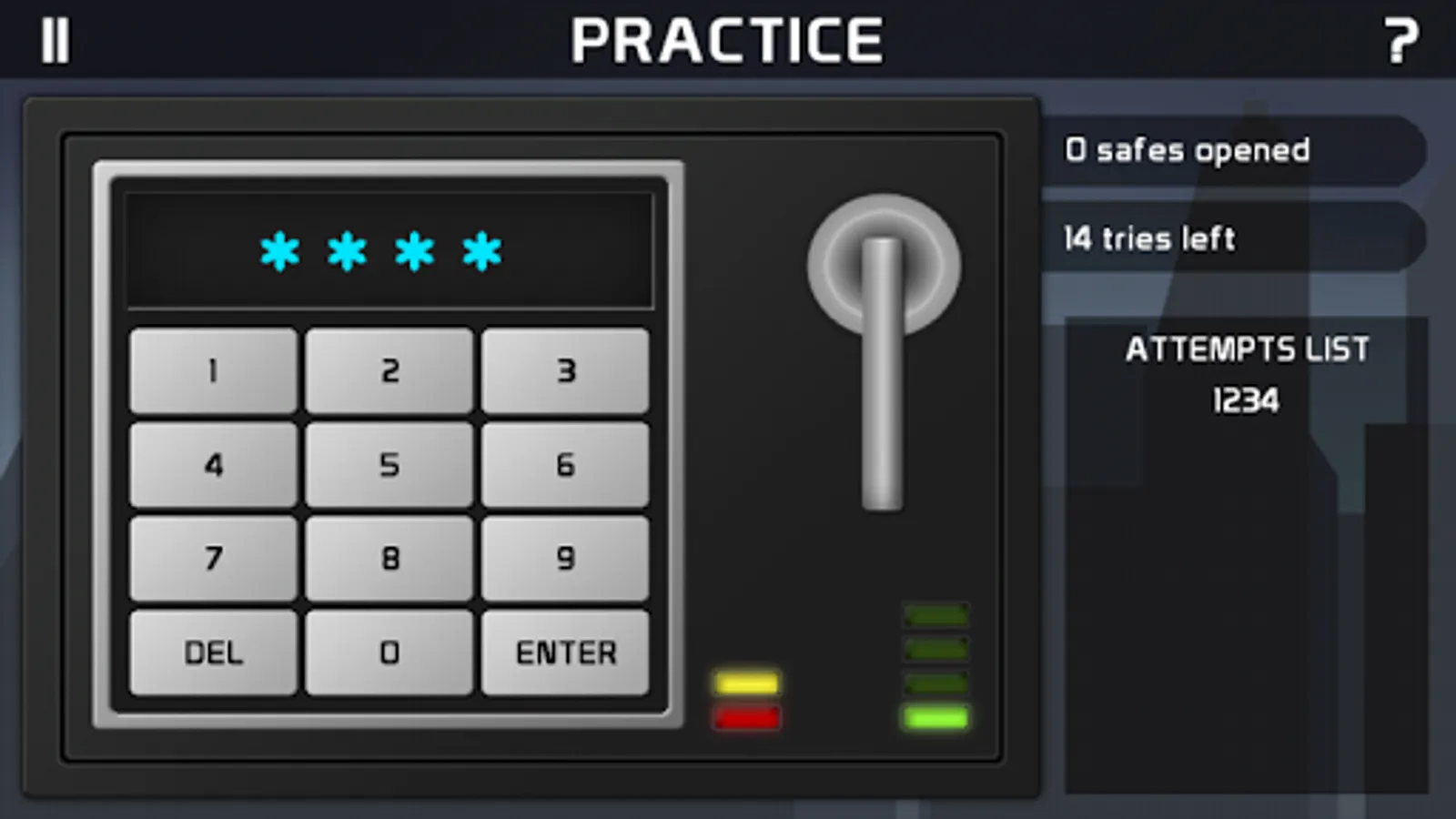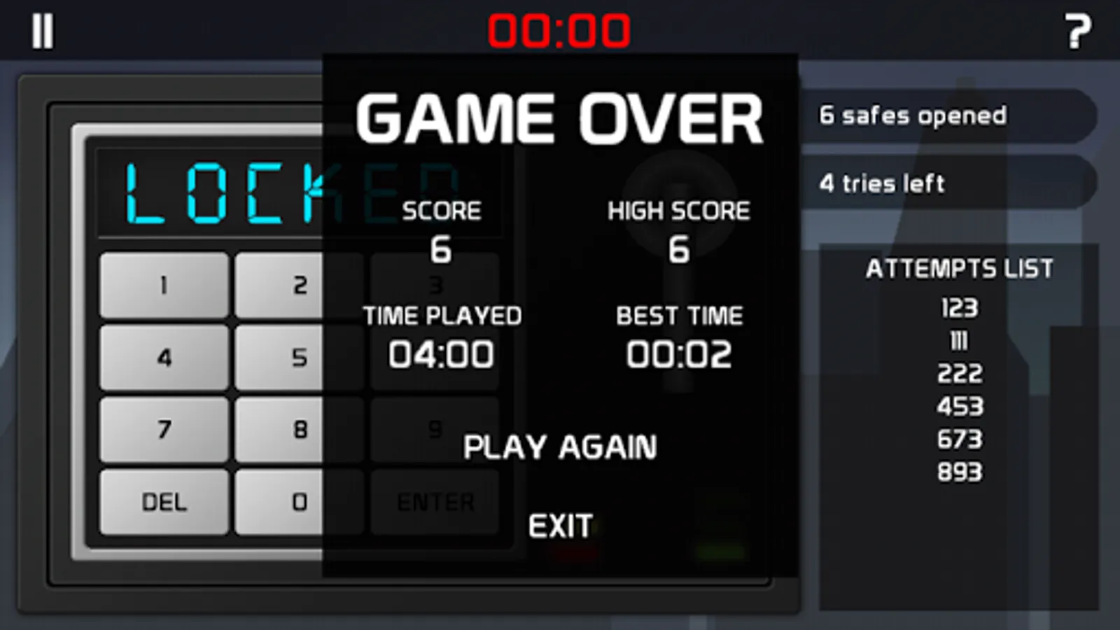 Time Trial: a true challenge where you'll have to open as many safes as you can in 3 minutes. All scores are stored, best time included.
