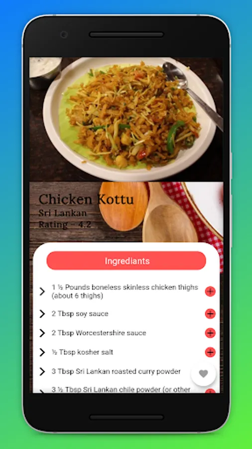Now that you've our Cook Book recipes app, you no longer need to carry around bulky recipe books. This mobile recipe app contain different educational Colorful foods for you. Also saving your favorite recipes in your app is a great feature.