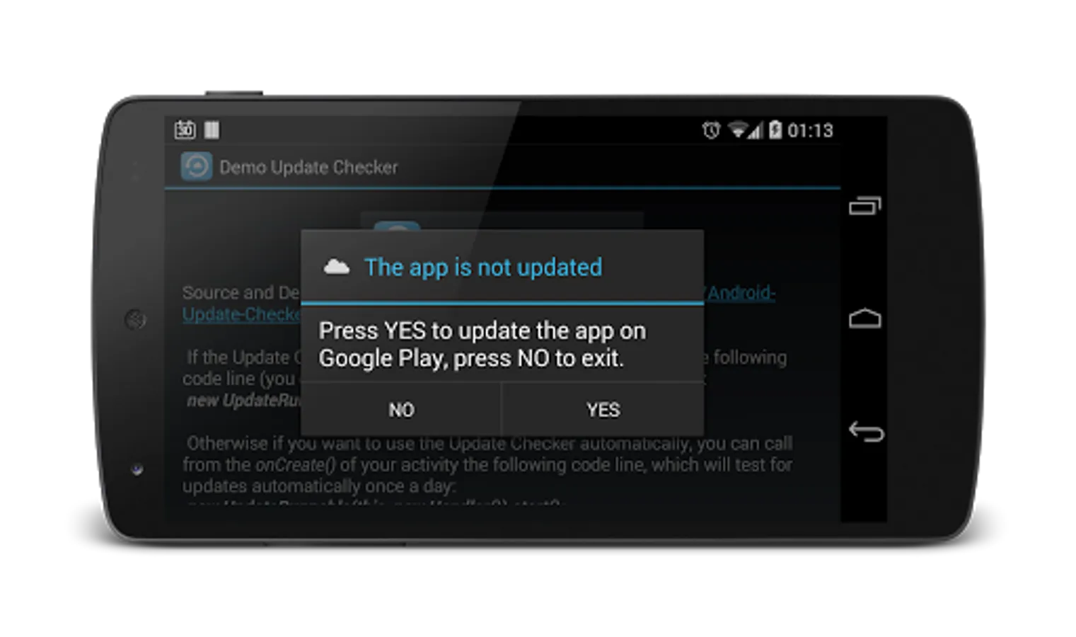 The source code for this application and demo is available at: https://github.com/danielemaddaluno/Android-Update-Checker
