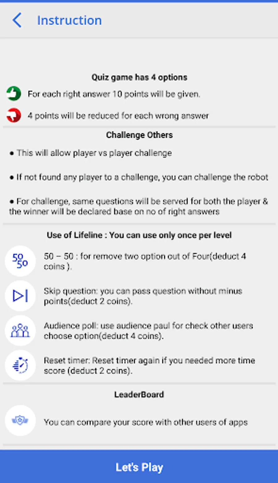 The app includes a search feature for a challenger to compete in answering 14 questions chosen randomly by the application