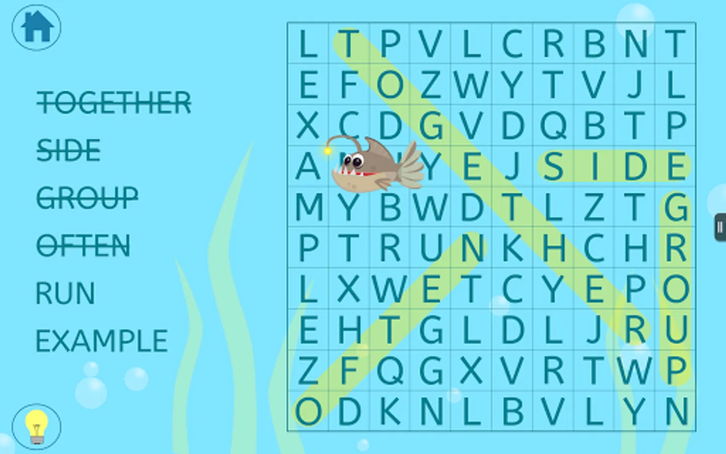 Oceans of Word Search - Underwater themed word search with context-sensitive help and interactive sea creatures as rewards for found words.
