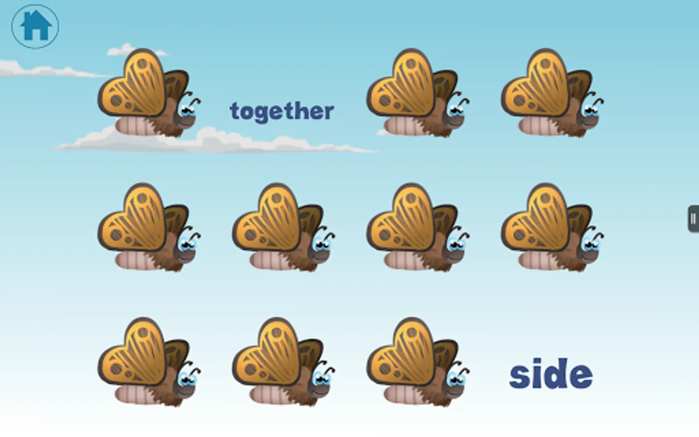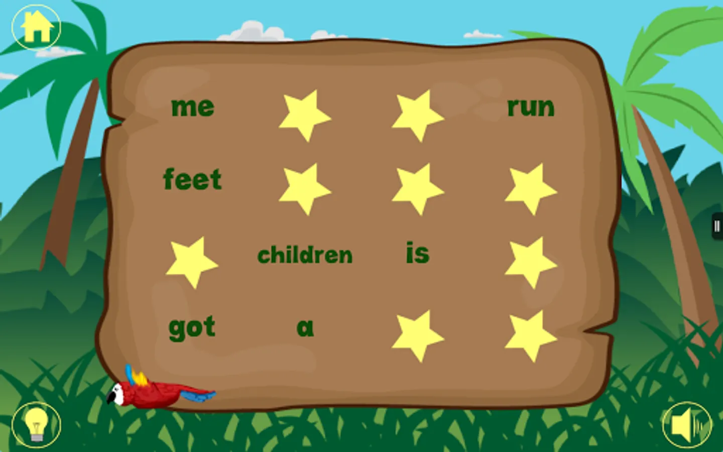 Memory Menagerie - Animals flip to reveal the words. Correct matches rewarded with animals flapping off the screen.